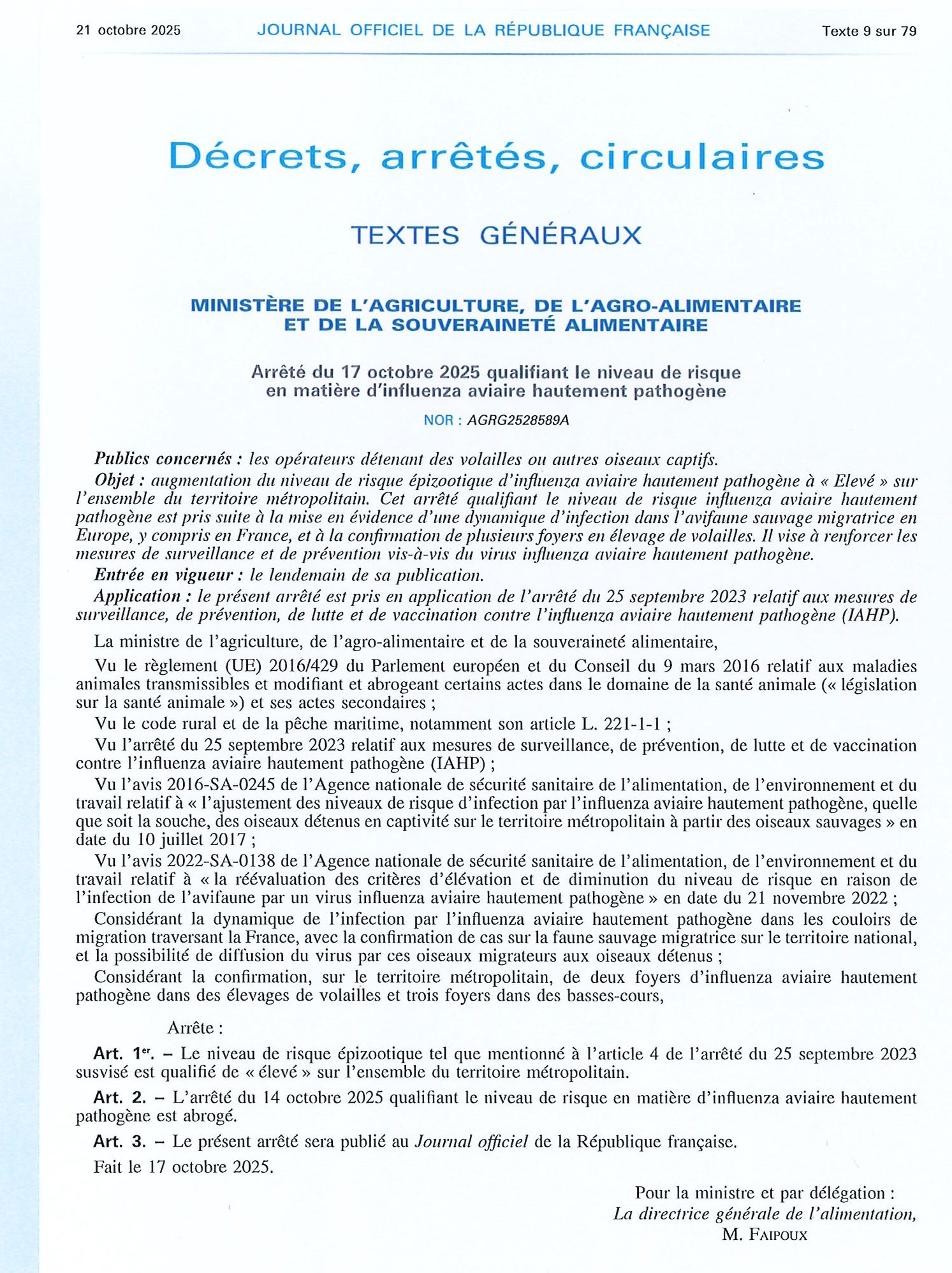 LUTTE CONTRE L’INFLUENZA AVIAIRE